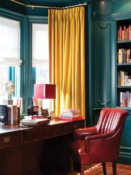 亮黃色的窗簾與椅子相呼應(yīng),還好選的椅子面積很小,不然大面積的飽和色空間估計(jì)很難舒服的呆著。