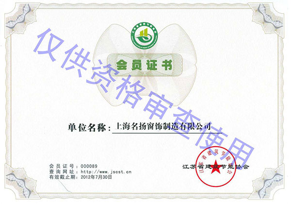 江蘇省建筑節(jié)能協(xié)會會員證書