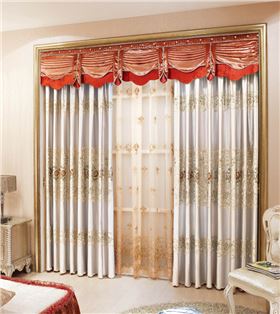 花型、色彩及款式:花型以抽象的花卉圖案為主;色彩濃郁,以深色調(diào)為主。如:紫色、玫紅。平過簾頭或波浪簾頭款式均可使用。