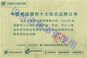 中國(guó)電動(dòng)窗簾十大知名品牌證書