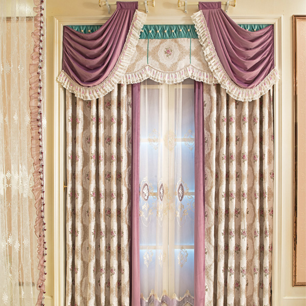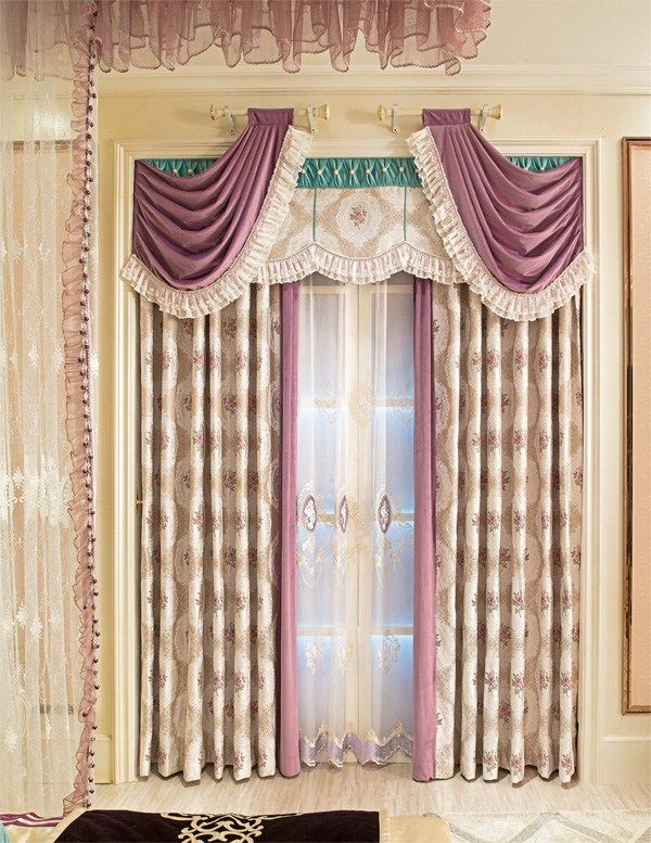 花型、色彩及款式:花型以抽象的花卉圖案為主;色彩濃郁,以深色調(diào)為主。如:紫色、玫紅。平過簾頭或波浪簾頭款式均可使用。