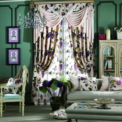 紫色印花窗簾