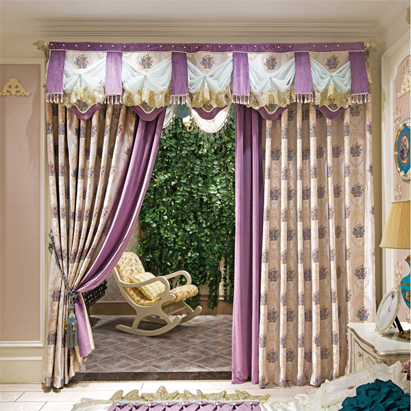 花型、色彩及款式:融合各種歐式花卉及卷草圖案。以金色調(diào)為主,酒紅、紫紅等為配色,搭配層次豐富的水波簾頭款式及歐式花邊進(jìn)行設(shè)計(jì)。(如:吊珠類花邊等)